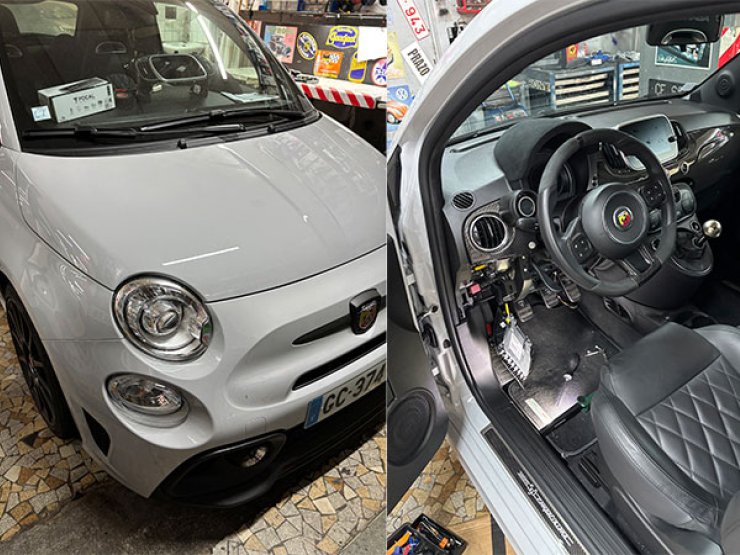 Vente et pose régulateur de vitesse et système audio focal sur cette Fiat Abarth.